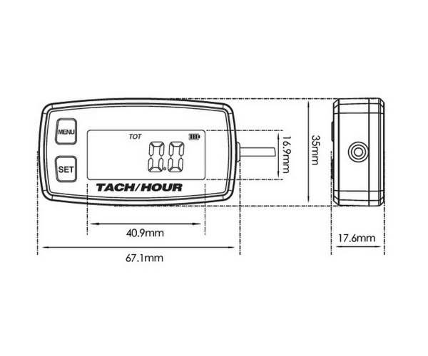 Универсальный тахометр предназначен для измерения числа оборотов двигателя, оснащен функцией отображения моточасов.