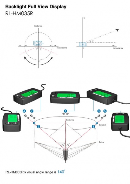 Тахометр универсальный со счетчиком моточасов с подсветкой и сменной батарейкой RLHM035R