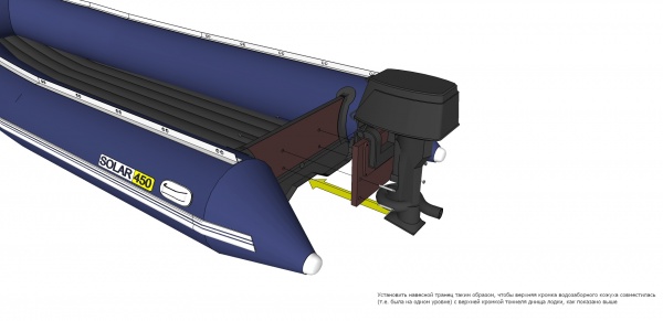 SOLAR-450 tunnel JET укомплектован накладкой на транец, для установки подвесного водомётного двигателя на требуемую высоту именно под Ваш мотор.
