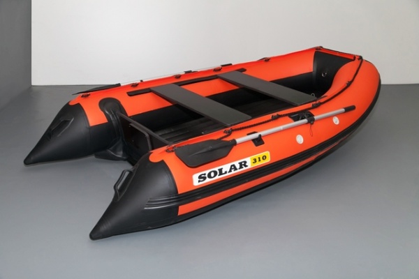 SOLAR-310 Полностью надувное Килевое ! днище в надутом виде дополнительно усиливается слоем ПВХ-ткани по всей поверхности скольжения. Пол внутри лодки проклеен защитным слоем нескользящей ткани по всей площади. На такой лодке Вам не будут страшны мелководные старицы, заросли камышей и затопленные коряги. Дополнительно по желанию покупателя лодка комплектуется багажными сумками и накидками. В комплект поставки входит: руководство по эксплуатации (паспорт); 2 весла; 2 сидения; рем. набор (клей, ПВХ-ткань, инструкция по ремонту); насос ножной 6 л.; манометр; сумка для лодки.