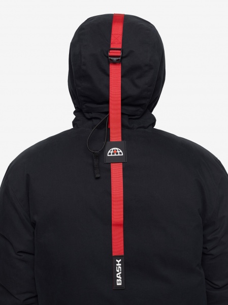- просторный глубокий капюшон с высокой стойкой, тубусом и регулировками/ с возможностью пристегнуть опушку BASK (продается отдельно);