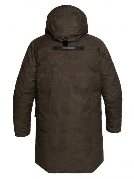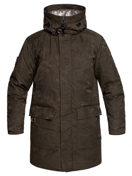 Удлинённая пуховая мужская парка для города и активного отдыха на природе. Утеплена гусиным пухом FP700+. Внешний слой выполнен из ткани Advance® Wax – прочной и приятной на ощупь ткани с вощением, что придаёт ей водоотталкивающие свойства, сохраняя воздухопроницаемость. Необходимые зимой детали: объемный регулируемый капюшон, дополнительное утепление в рукавах, встроенные манжеты, плечевые лямки для удобства ношения парки в помещении. Множество карманов, включая карман по планшет.
