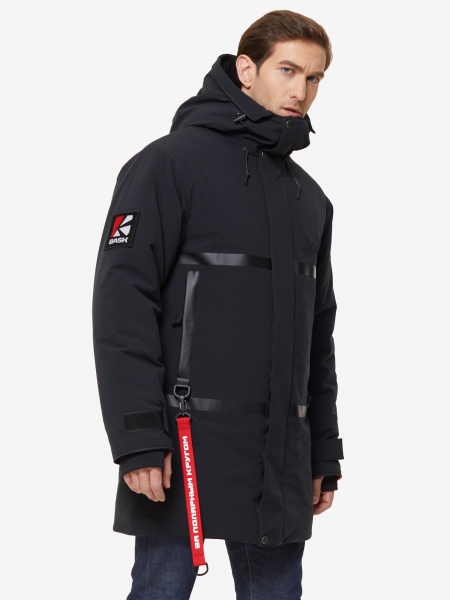 BASK SANGAR — тёплая мужская куртка на синтетическом утеплителе Shelter® Sport. Защитит от мороза в регионах с холодным и влажным климатом. Стильная и функциональная одежда для города. Куртка имеет прямой крой, отделку черной пленкой на груди и карманах, которая добавляет куртке современный вид. Верхняя мембранная ткань прочная, мягкая и дышащая. Ткань обработана водоотталкивающей пропиткой DWR для защиты от грязи и влаги. Фирменная «изюминка» куртки — внутренняя съемная лямка для ношения куртки в помещении. Куртка неприхотлива в уходе.