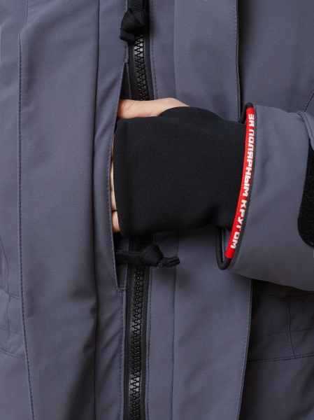 - регулируемые манжеты рукавов с внутренними манжетами полуперчатками «под палец»;
