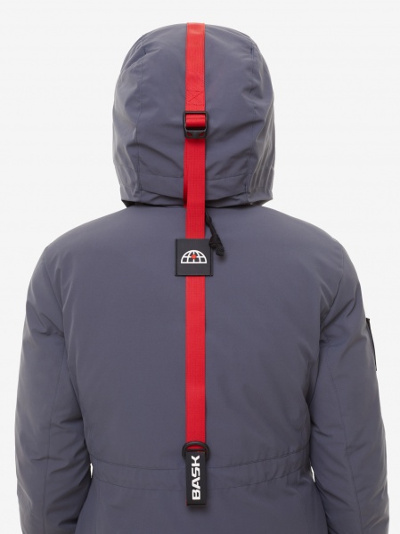 - просторный глубокий капюшон с высокой стойкой, тубусом и регулировками/ с возможностью пристегнуть опушку BASK (продается отдельно);