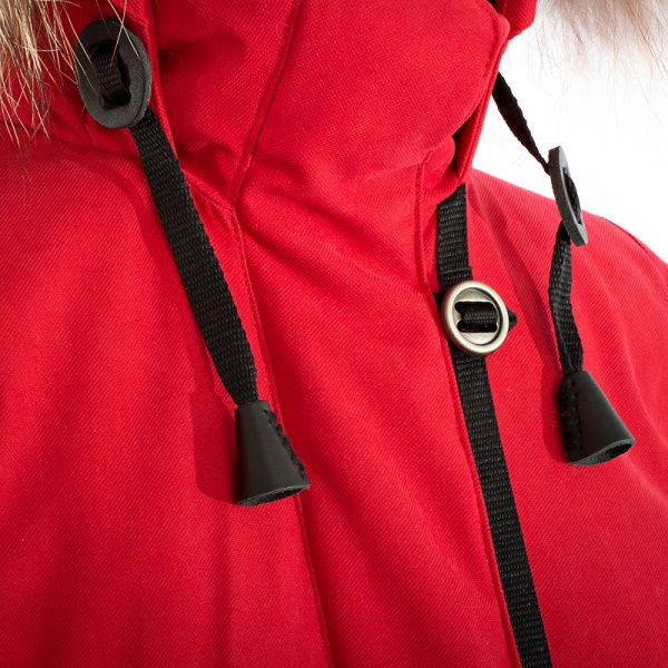 Капюшон с лицевой стяжкой, возможность пристегивания опушки к капюшону