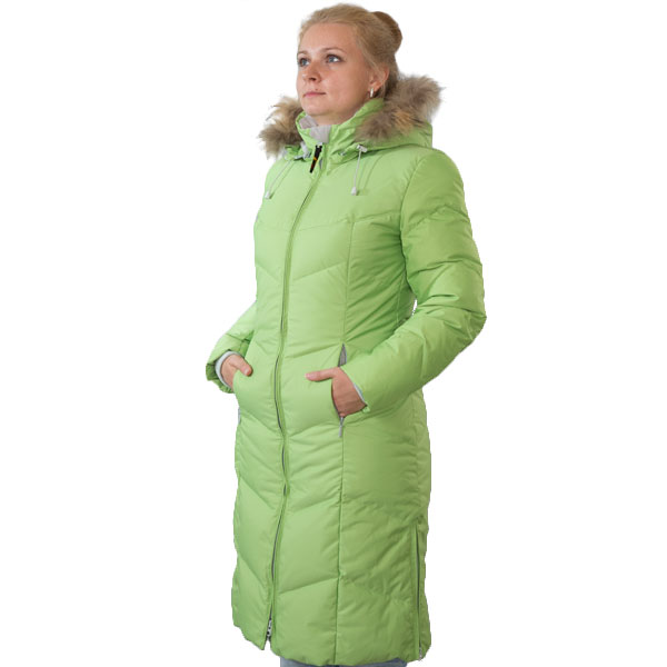 Тёплое зимнее женское пуховое пальто. Элегантный силуэт и модные расцветки. Капюшон с отстегивающейся меховой опушкой.