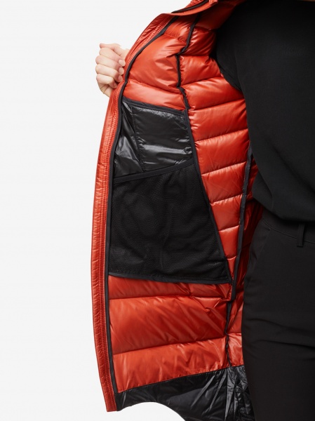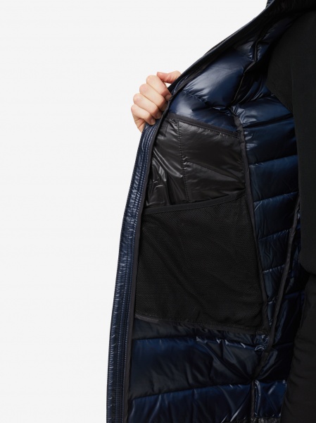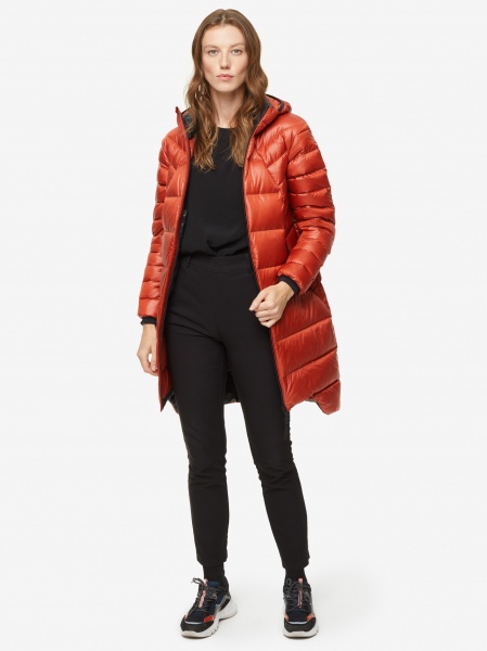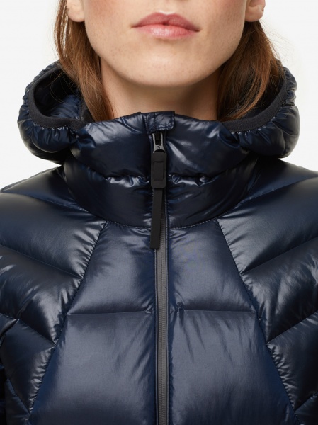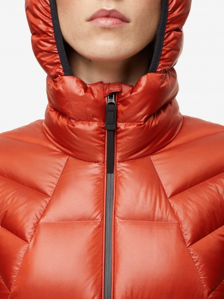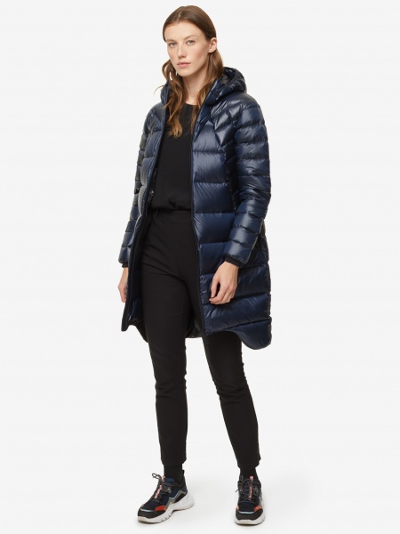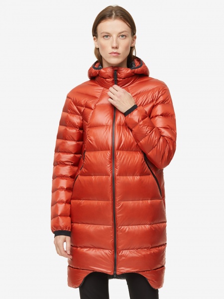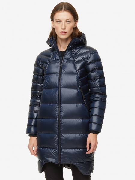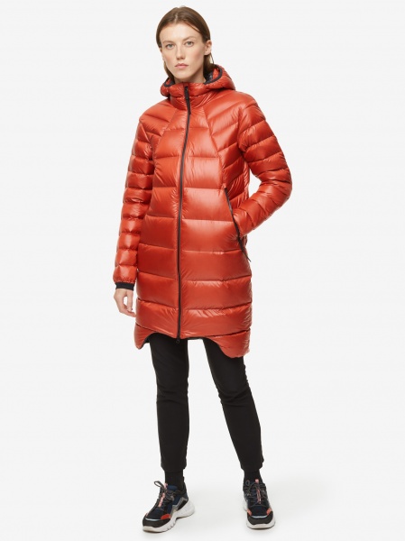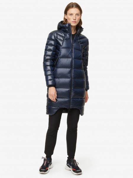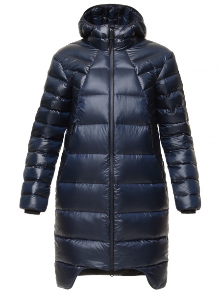 Практически невесомое женское пуховое пальто с капюшоном в спортивном стиле. Прямой крой, удлинённый «хвост», стилизация под реглан — отличительные черты модной верхней одежды. Ткань Advance® D Tube с бесшовными секциями для утеплителя, исключает миграцию пуха через швы.