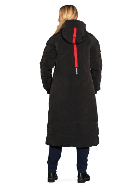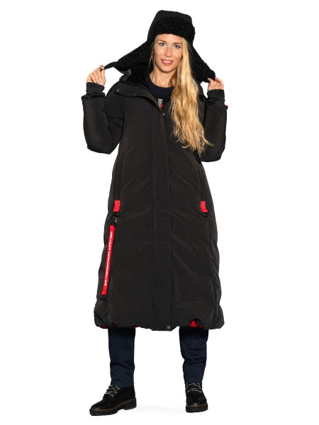 Пуховое женское пальто «в пол». Очень теплое и элегантное, создаст эффектный образ владелице. Будет дарить комфорт в морозные дни в городе. Прочная ткань верха не только прекрасно выглядит, но и надежно защищает от непогоды. Лаконичный дизайн разбавлен яркими съемными элементами брендирования.