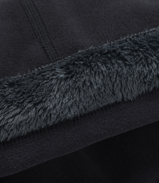 Отделка мягким длинноворсовым флисом внутри в области ушей и лица для комфорта, звукопроницаемости и защиты от задувания.